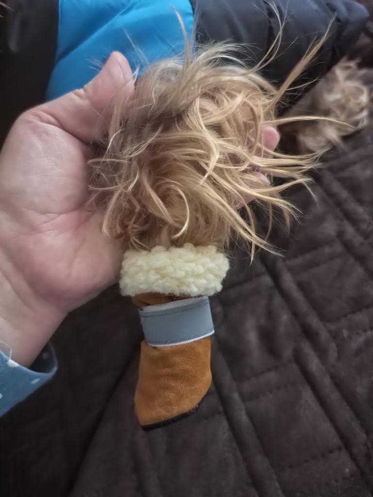 Ich habe über zwei Monate gewartet, für einen Zwergpinscher passt es genau, die Sohle ist rutschig, dünn, ich weiß nicht, wie lange es hält, der Schaft ist aus Fell, aber unter den Ballen ist nur die Sohle, ich werde eine Fellsohle machen, aber ansonsten ist die Idee im Großen und Ganzen nicht schlecht, Gummi unter dem fixierenden Klettverschluss, sehen schön aus, rutschen nicht von den Pfoten