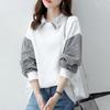 Frauen Drehen Unten Kragen Langarm Bluse Tops Frühling Mode Splice Pullover Tops