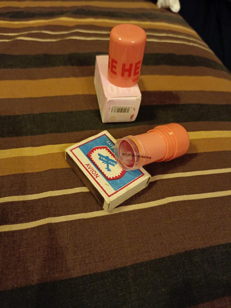 Farbe Karotte, Lippenstiftgelee, wenn man fester drückt, springt er aus der Hülse.
