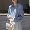 Weißes Hemd Damen Langarm Blusen & Hemden Frühlingsoutfit OL Professionell Pendeln Französische Falten V-Ausschnitt Elegantes Oberteil