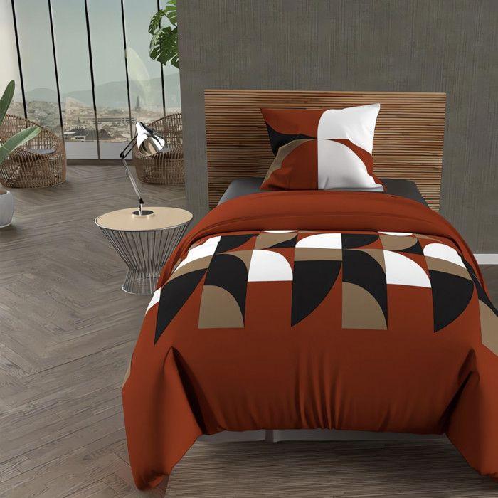 Parure housse de couette microfibre 140X200 cm RETRO rouge, par Intemporel
