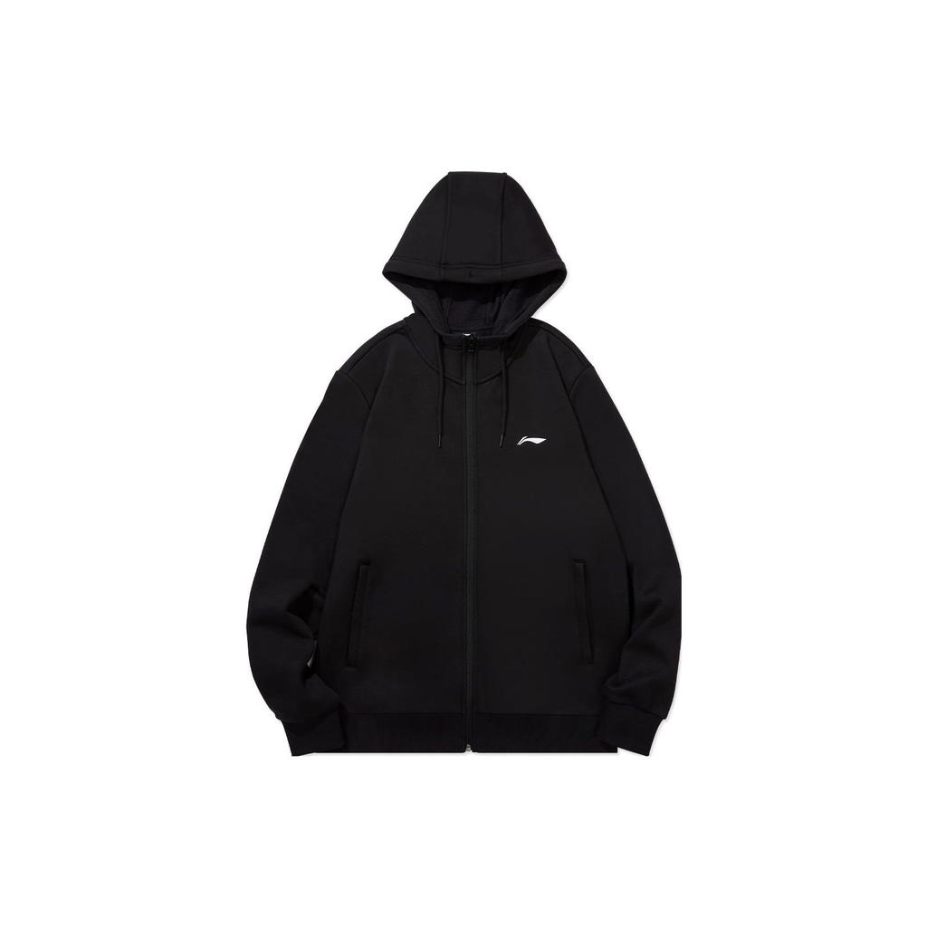 Li Ning Badminton Serie Kapuzen-Fleece-Cardigan Herren Sweatshirts Schwarz AWDTD77-1
