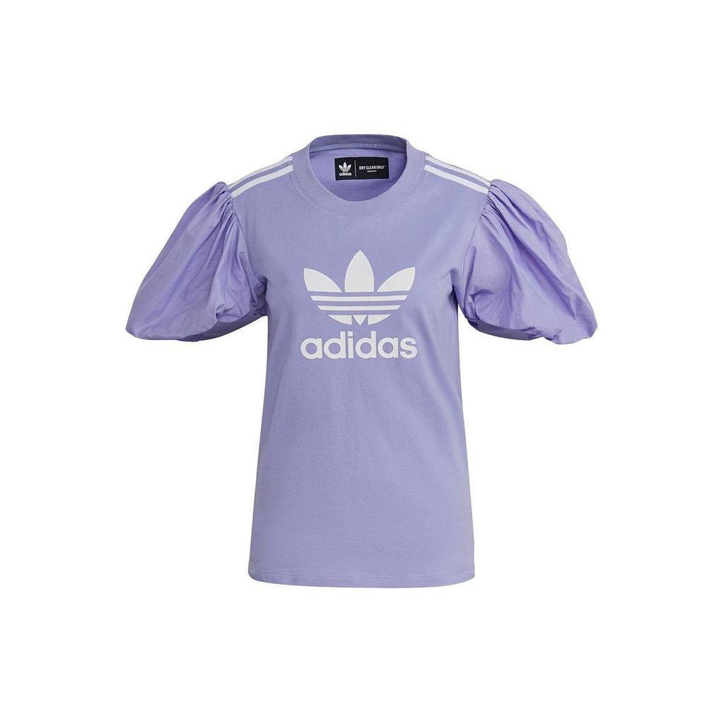 Adidas Originals Three Stripes Rundhals-Pullover mit Aufdruck Buchstaben Casual Kurzarm Laternenärmel T-Shirt Damen Tops Lila H59037