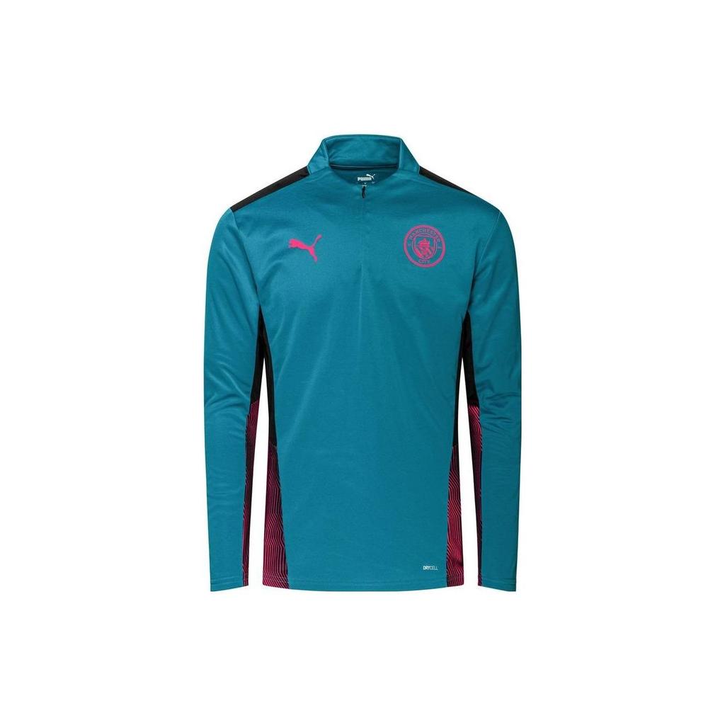 Puma Mufc Manchester City Football Club Logo Print Half-Zip Pullover Langarm T-Shirt Herren Tops Blau 764574-15