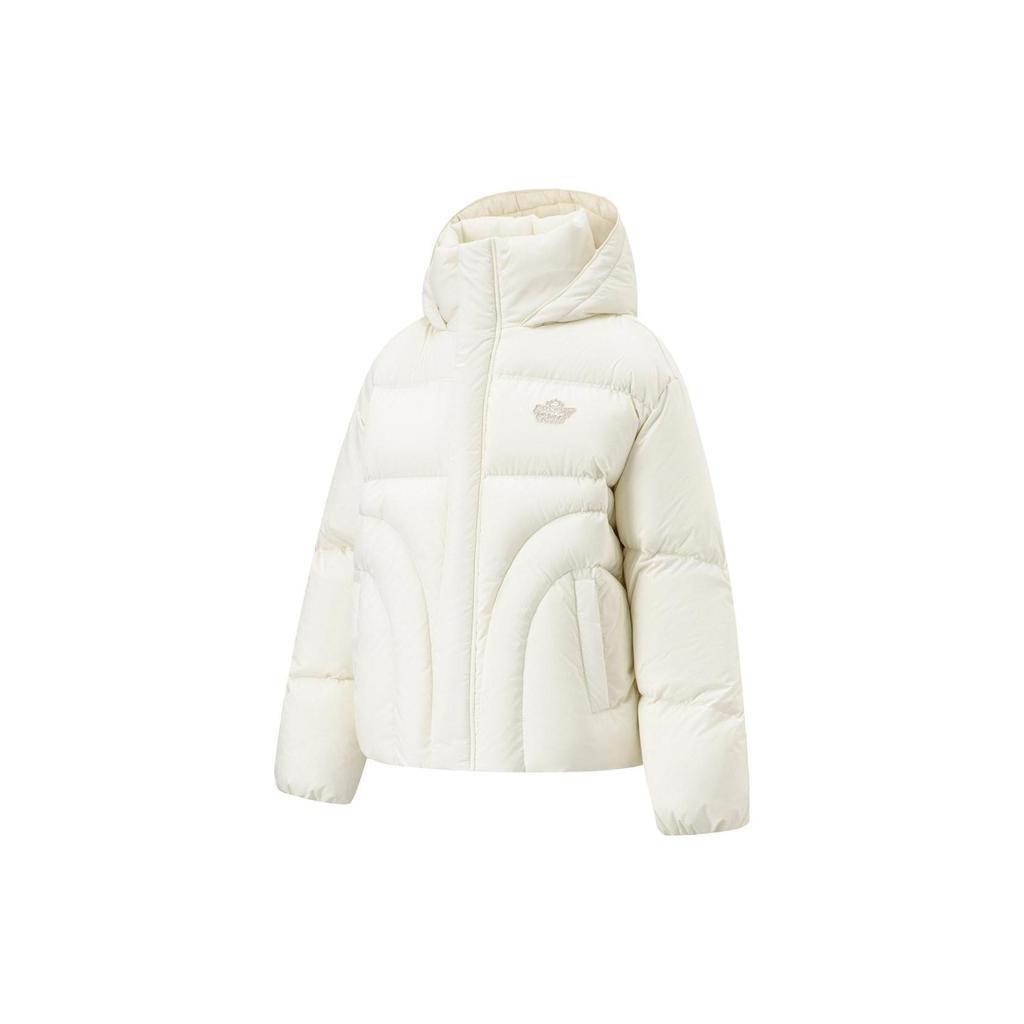 Li Ning Einfarbige Lässige Kapuzen-Kurzdaunenjacke mit Reißverschluss Unisex Jacken Off-White AYMT419-3