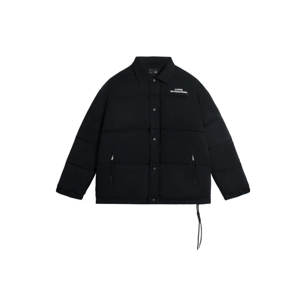 Li Ning Buchstabenprint Revers Locker Kurz Daunenjacke Herren Oberbekleidung Schwarz AYMR541-3