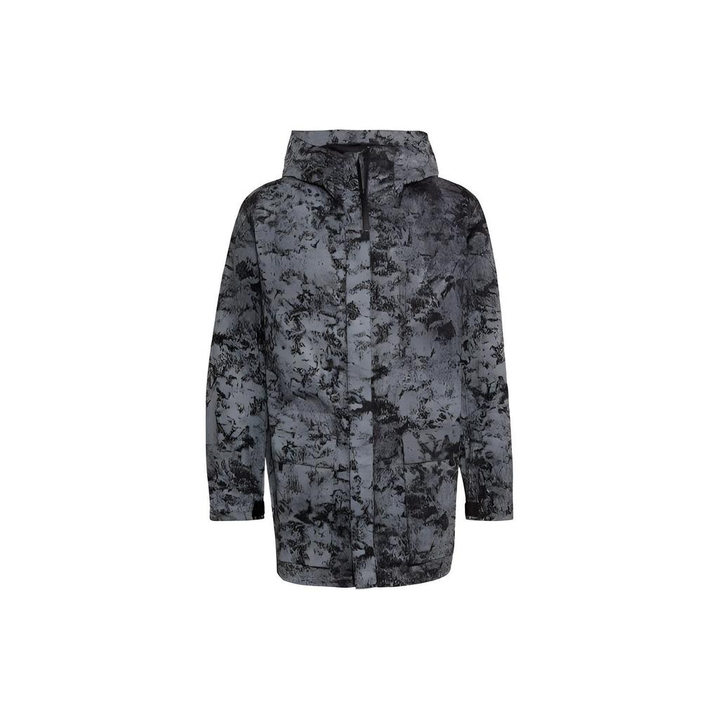 Y-3 FW21 Textured Reflective High Neck Hooded Mid-Length Jacket Men Jacket Gray GV4171