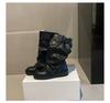 Flache Plattform Frauen Mitte Wade Stiefel Chunky Heels Leder Goth Schuhe Trend Winter Frau Warme Knöchel Schnee Stiefel Mujer Zapatos