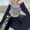 Frühlings- und Herbst-Damenbluse mit Rundhalsausschnitt, Buchstabenaufdruck, schulterfrei, lange Ärmel
