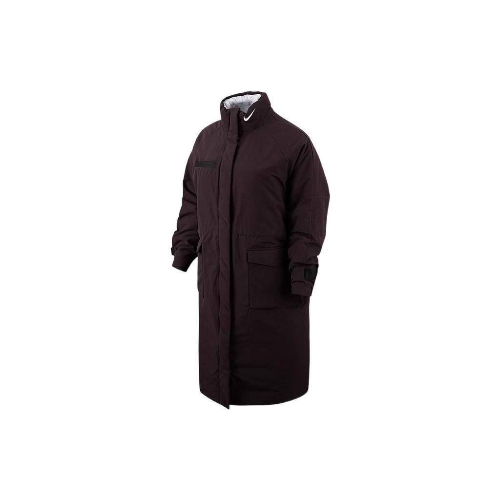 Nike Unifarbener Logo-Print Tasche Reißverschluss Mittellanger Baumwollmantel Damenmäntel Braun DD4651-203