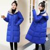 Damen Winter Baumwolle gefütterte Übergroße Parkas Freizeitjacken Koreanische Mode Stehkragen Kapuze Warmer Saum Knielange Pufferjacke