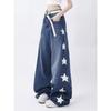 Amerikanische Instagram Retro Sternenprint Jeans Damen Sommer Neu High Street Locker Gerades Bein Weite Mop Hose Trend