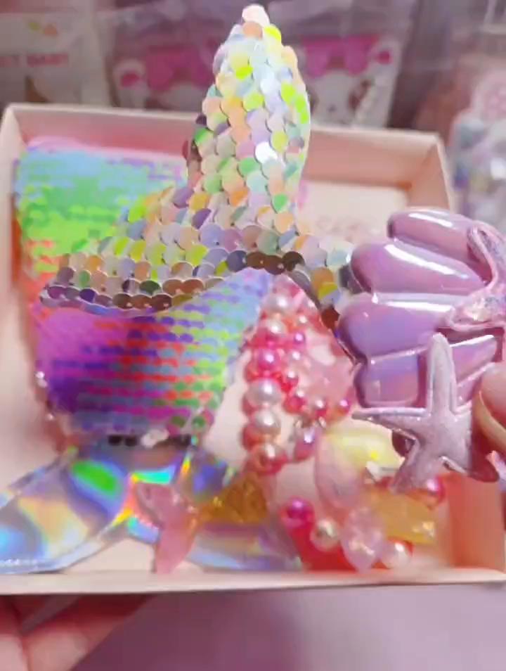 Mädchen Kleine Meerjungfrau Party Zubehör Halskette Ring Ohrring Armband Kinder Spielzeug Kinder Geburtstag Geschenk Magie Pailletten Geldbörse Stirnband