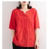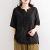 Summer Embroidered Cotton Hemp Artistic Style T-shirt for Women V-neck Retro Loose Casual Short Sleeve Solid Color Top T-Shirts Women’s