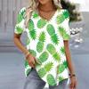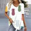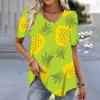 Sommer Süße Ananas Frische 3D Digital Gedruckt Locker Lässig V-Ausschnitt Kurzarm Damen T-Shirt Top