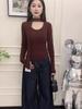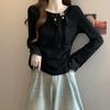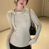 German Velvet Design Butterfly Tie Tied Long Sleeved T-shirt for Women In Spring Autumn Slimming Off Half High Collar Base Top T-Shirts Women’s