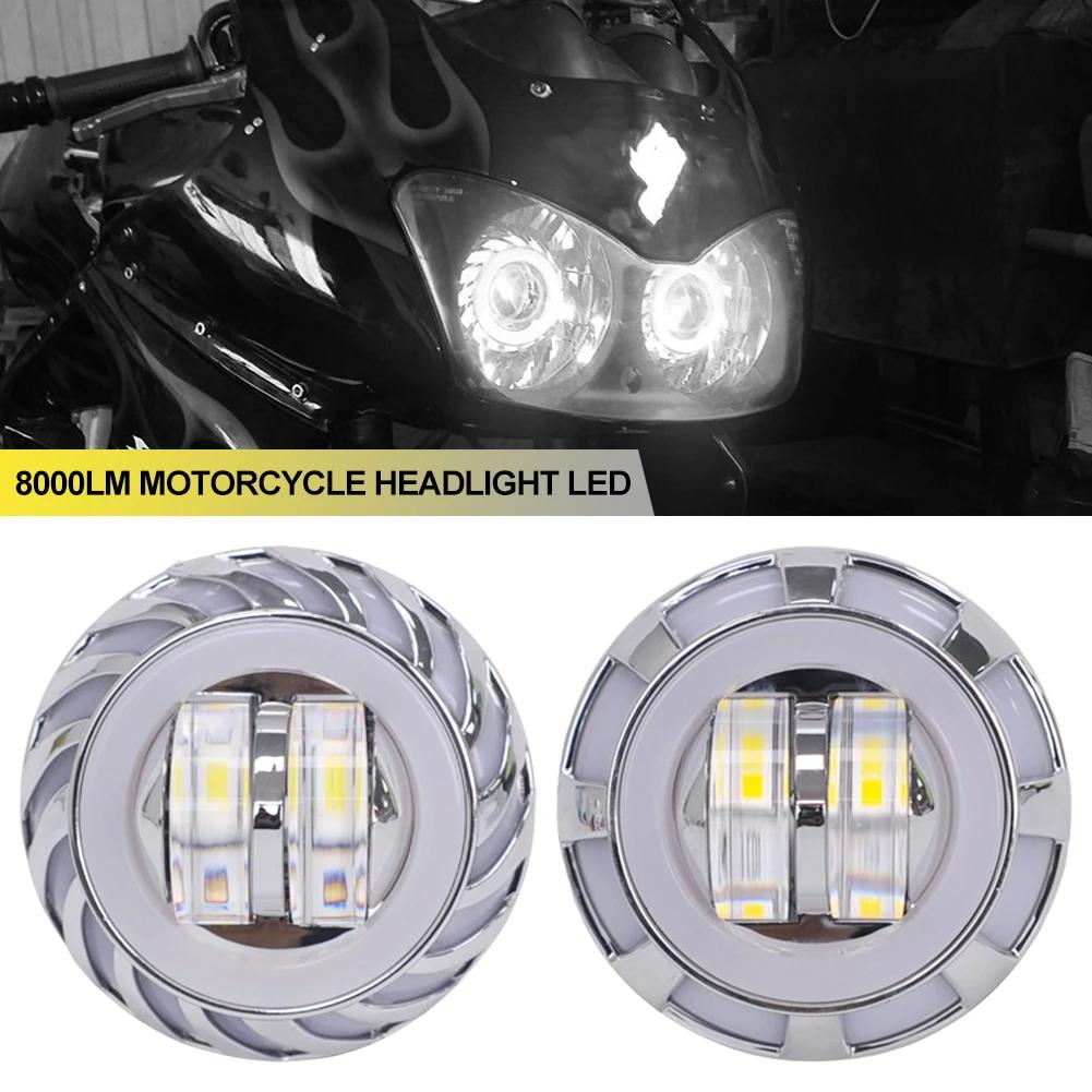Auto Motorrad 8000LM Scheinwerfer LED Angel Devil Eyes Scheinwerfer Projektor Objektiv High/Low Strahl Strobe Scheinwerfer DRL Dual halo Lampe