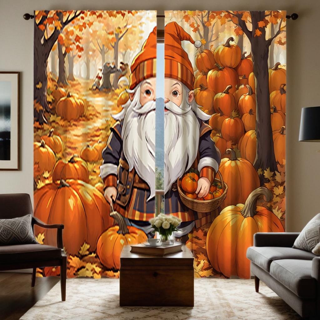 2 Stück HD Ahornblatt Wald Kollektion Kürbis alte Gardine Gelb digital bedruckte Gardine Heimdekorationsstil Dekoration