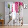 Greece Santorini Blue Roof Church Tulle Sheer Window Curtains for Living Room Kitchen Children Bedroom Voile Hanging Curtain