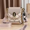 Mini Studded Decor Crossbody Bag, Argyle Embroidery Mobile Phone Purse, Trendy Chain Decor Handbag For Women