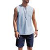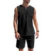 Herren-Westenset aus Baumwolle und Leinen, einfarbig, leicht, atmungsaktiv, V-Ausschnitt, Kordelzug-Design, Sets für Urlaub und Strand, gemütliche Anzüge