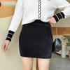 Kurzer Strickrock aus Nerzimitat mit hoher Taille und Elastizität im Herbst und Winter, schlankmachender und schlankmachender Basis-Taschenrock, Halbkörperrock