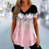 Sommer Damen T-Shirt 3D-Blume Bedruckte Kleidung Schönes V-Ausschnitt Kurzarm T-Shirt Trend Mode T-Shirt für Damen Straße
