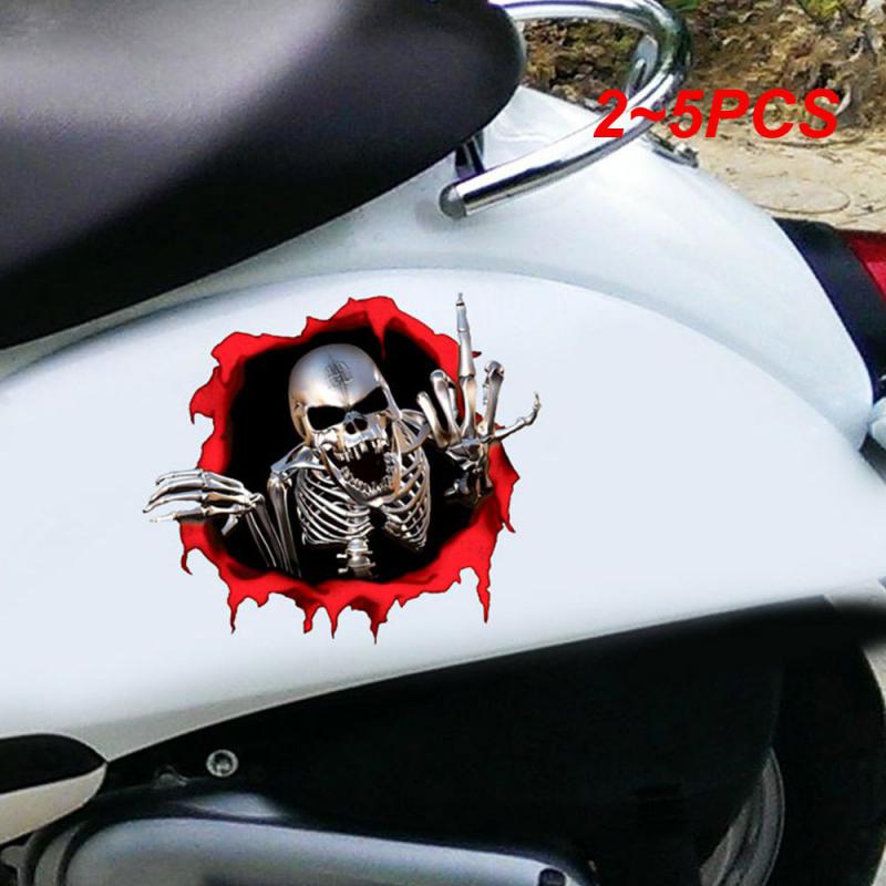 2~5PCS Car Stickers Skeleton Skull In The Hole Funny Colorful Car Auto Decals Hole Horror Skull Car Sticker