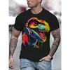 Sommer Urban Fashion Herren T-Shirt Täglich Casual Kurzarm Top Outdoor Street Komfort T-Shirt Buntes Dinosaurier-Print T-Shirt