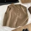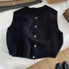 Frühling Herbst Damen Einfarbig Knopf V-Ausschnitt Ärmellos Pullover Strickjacke Weste Mäntel Lässig Mode Büro Dame Elegant Tops