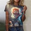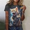 Neues Sommer Damen 3D Cool Rock Katze Druck T-Shirt Modetrend Tops Tees Damen Lässig Kurzarm Kleidung Y2K Streetwear