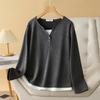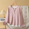 Herbst Neue Plus-Size-Damenoberteile Einfache und vielseitige Nähte Gefälschte Zwei Langarm-T-Shirts als Basis