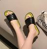 Mode 2024 Damen Hausschuhe mit gemischtem Farbblock Grün Sandalen Plateau Pantoletten Damen Gestreifte Lederschuhe Dicksohlige Flipflops Slipper