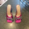 Mode Neue Strass Schmetterlingsknoten Slipper Feine Absatz Sandale Damen Kristall Fee Rosa Blau Schleife Diamant Hoher Absatz Pantoletten Schuhe für Party