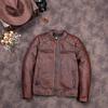 Chinese Size Amei Kaki Vintage Brown First Layer Natural Cowhide Men's Leather Jacket Men Biker Coat Slim Fit Autumn