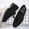 Mode Slipper Herren Karomuster Quaste Wildleder Braun Eckige Zehenpartie Party Hochzeitsschuhe für Herren mit Herrenschuhe