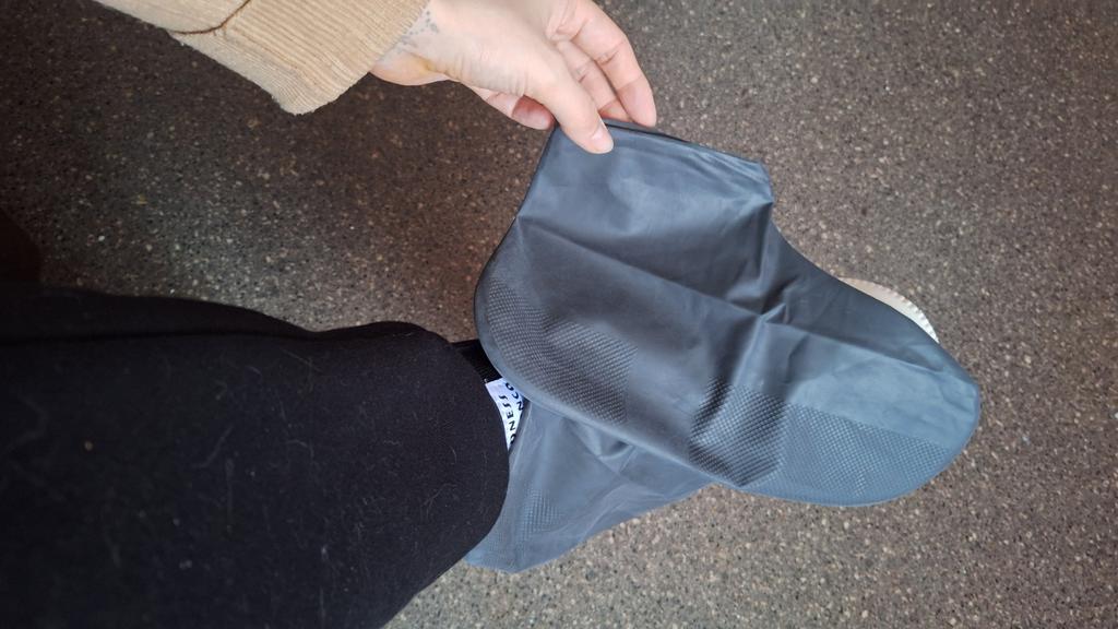 Habe es noch nicht benutzt, aber ich denke, es reicht für ein, zwei Mal, um die Füße nicht nass werden zu lassen. Man sollte diesen Schutz auf Asphalt tragen, da Latex auf Schotter oder steinigem Untergrund sofort beschädigt wird. Man kann ihn in der Handtasche für unerwartete regnerische Momente mitnehmen, um sich nicht zu erkälten.