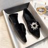 Mode Klassische meistverkaufte lässige Plüsch-Ballerinas für Damen-Oberbekleidung, Plüsch-Winter-Strass-Spitzschuh mit flachem Ausschnitt