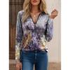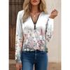 JPNTKY Damenmode Lässig Herbst Winter Floraler Druck Langarm Reißverschlusskragen Blusen & Hemden