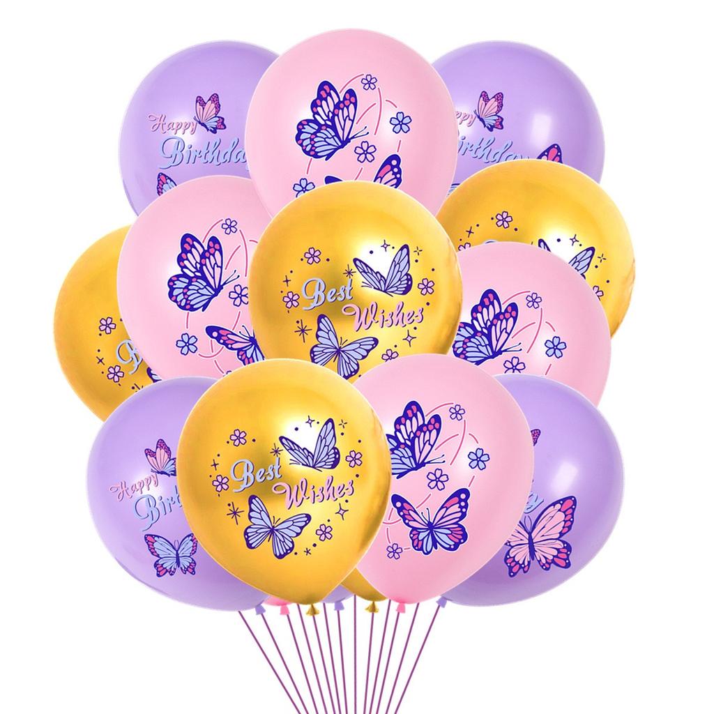 12 Stück 12 Zoll Bunte Schmetterlingsballons Mädchen Schmetterling Geburtstagsfeier Deko Cartoon Schmetterling Latexballons Kinder Mädchen Gastgeschenke
