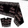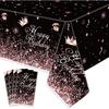 Roségoldene Geburtstagstischdecke Rosa Rose Blume Gold Happy Birthday Tischdecke Happy Mädchen Prinzessin Geburtstagsfeier Zubehör
