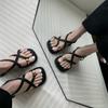 Mode Sandalen Designer Neu 2024 Kleid Damen Metalldekoration Damen Schmaler Riemen Schnalle Dicke Absätze Damenschuhe Draußen Party Zehenclip