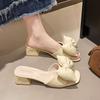 Mode Mode Sandalen 2024 Neu Sommer Große Größe Eckige Zehenpartie Dicker Absatz Pantoletten Schuhe Elegant Große Schleife Draußen Kleid zapatos