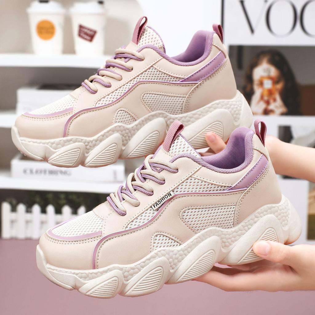 Mode Sport Trend Damen Schuhe 2024 Frühling Neu Mesh Dicke Sohle Doppelte Schnürsenkel Retro Koreanische Lässige Dad Schuhe 36-41