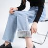 Damen Jeans Herbst Winter Samt Dick Gerade Weites Bein Jeans Hohe Taille Locker Wollfleece Mom Mode Hose