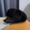 Plush Patchwork Beret Autumn and Winter Retro Fashion Octagonal Hat