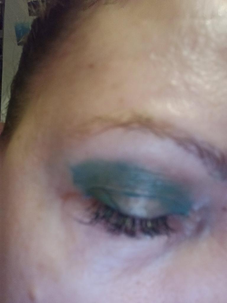 Die Farbe ist nicht schlecht, aber sie setzt sich in der Lidfalte ab.
