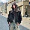 Winter Damen Übergröße Gepolsterter PU Mantel Jacke Lockerer Haarkragen Bikeranzug Jacke