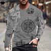 Vintage Print Herren Langarm T-Shirt Rundhals Herrenbekleidung 3D Druck Vintage Grafik T-Shirts Atmungsaktive T-Shirts für Herren