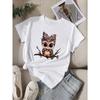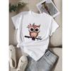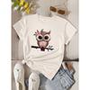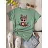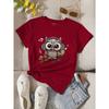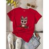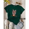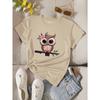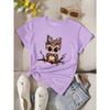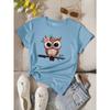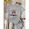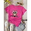 Damen Sommer T-Shirt mit Cartoon-Eule-Print, Rundhalsausschnitt, kurzärmelig, lässig